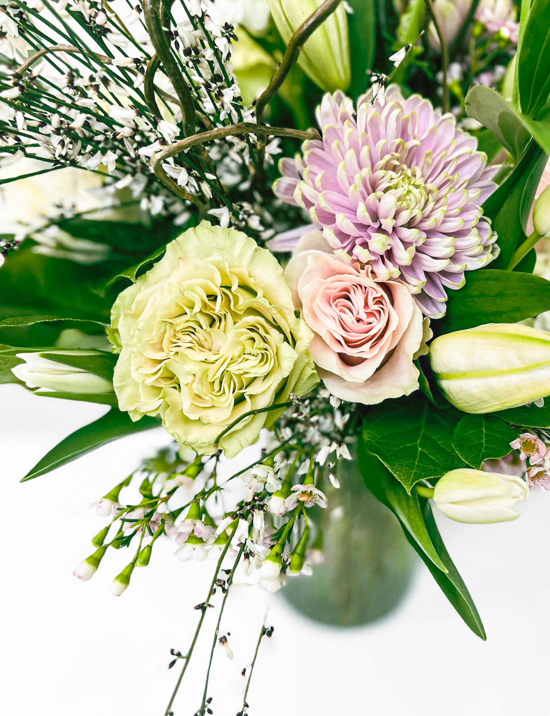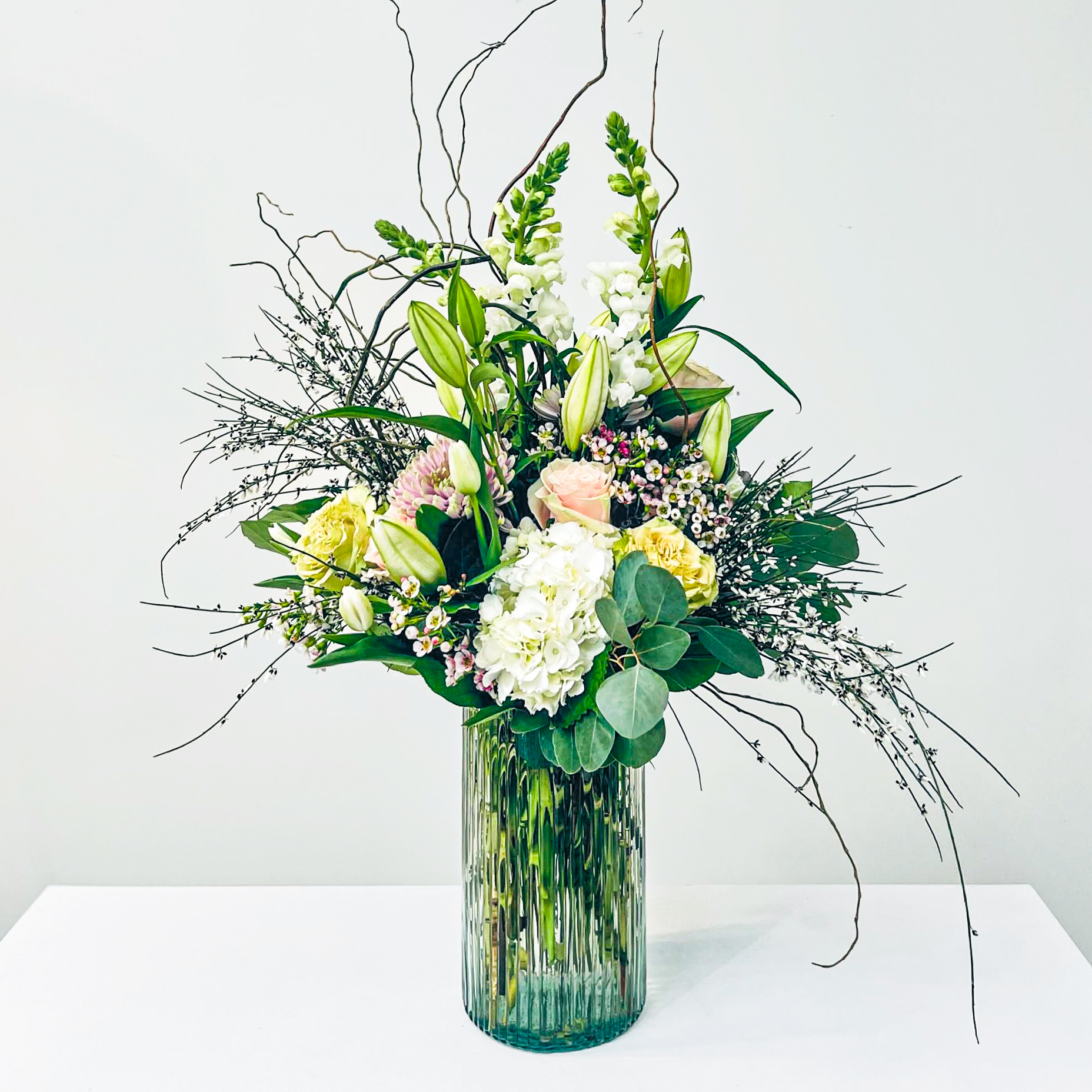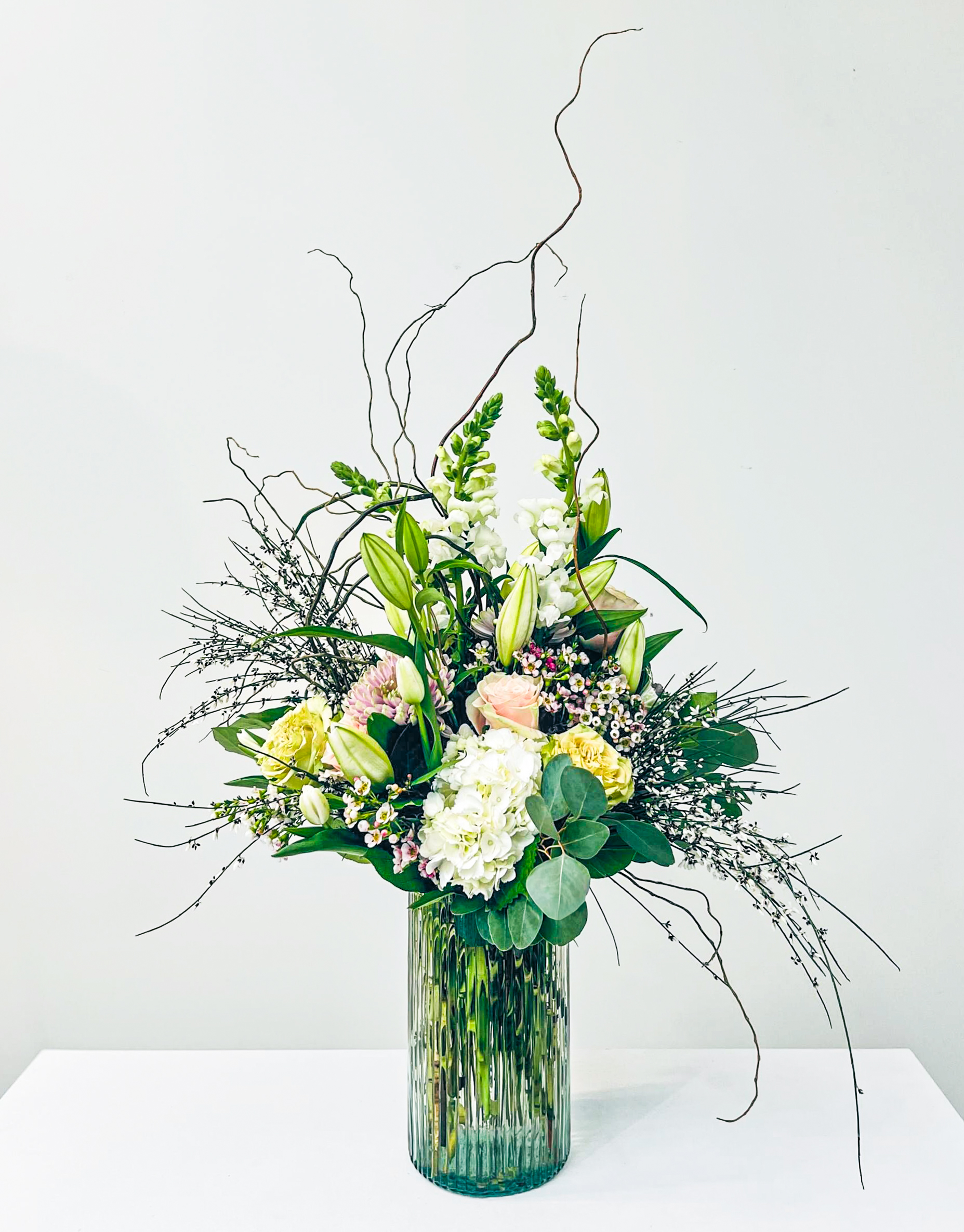Seasonal arrangement of this season’s favorite flowers. Vase & flowers will vary according to the season and availability.